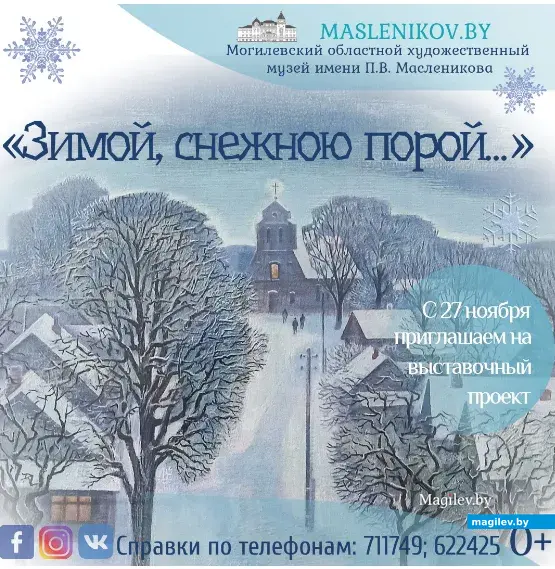 Выставочный проект «Зимой, снежною порой…» включает работы самых разных белорусских художников: Николая Лихоненко, Георгия Поплавского, Натальи Поплавской, Александра Суворова, Владимира Васюка, Николая Арасланова, Михаила Карпука, Владимира Напреенко и других прославленных мастеров.