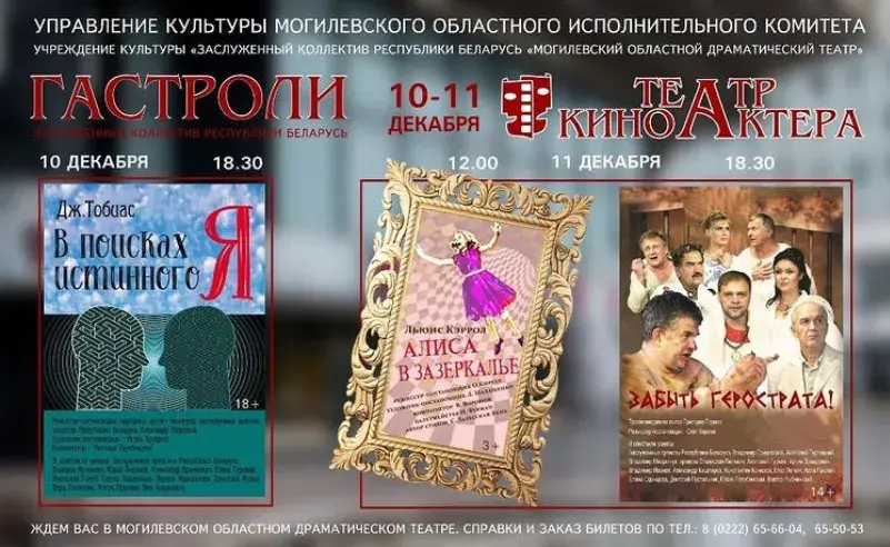 10-11 декабря состоятся гастроли заслуженного коллектива Республики Беларусь «ТЕАТР-СТУДИЯ КИНОАКТЕРА» УП «Национальная киностудия «Беларусьфильм».