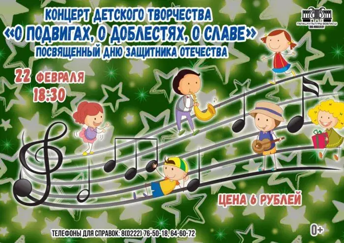 22 февраля в преддверии Дня защитника Отечества на сцене Дворца культуры области состоится концерт детского творчества «О подвигах, о доблестях, о славе»!