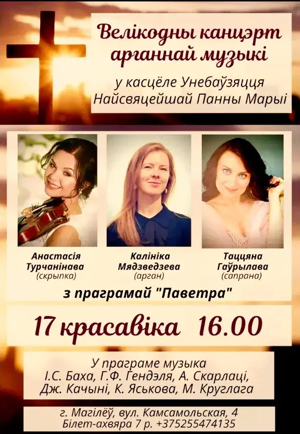 В костеле Успения Девы Марии и святого Станислава 17 апреля состоится концерт органной музыки. В программе «Паветра» прозвучат произведения Иоганна Баха, Георга Генделя, Алессандро Скарлатти, Дж. Каччини, Константина Яськова, Максима Круглого.