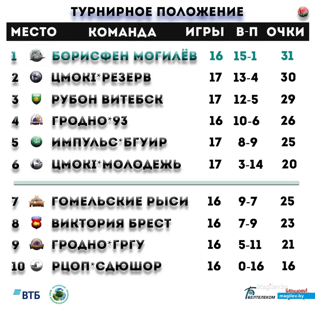 Начало четвертой четверти было также за «Борисфеном». Сделав задел в 29 очков, могилевчане перестали играть, тем самым дали возможность своим оппонентам сократить отставание. В итоге – 23:27. Общий счет – 80:60. В следующем туре рыцари» отправятся в Витебск 22-го января, где сыграют против «Рубона»