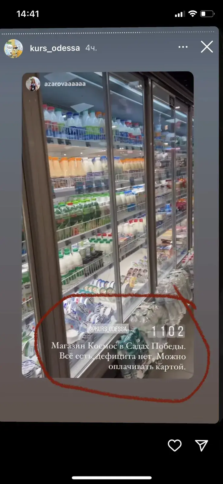 Работают крупные торговые сети, в основном, только продовольственные, все остальное закрыто. Продукты есть, хотя отдельные позиции могут и отсутствовать, но на это уже никто не обращает внимание. В первый день были очереди небольшие. Топливо на заправках тоже есть – газ и бензин.