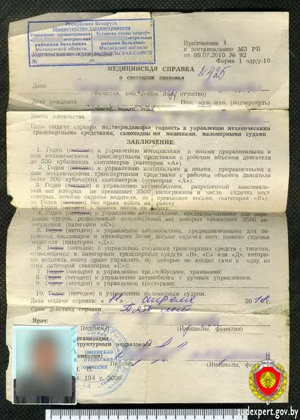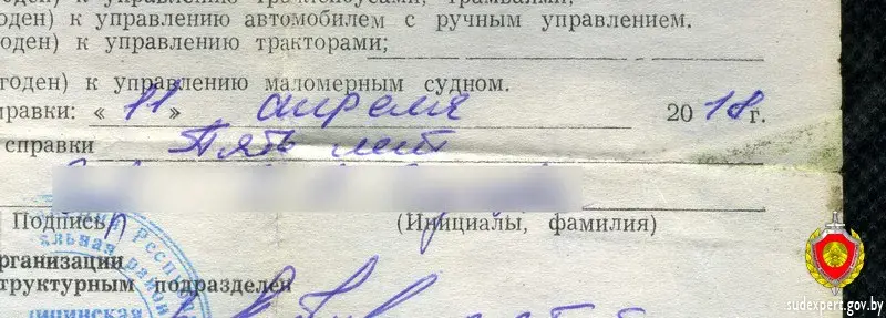 Медицинскую справку изъяли и направили на исследование в Могилевский межрайонный отдел Государственного комитета судебных экспертиз.