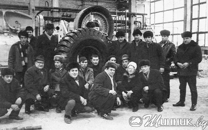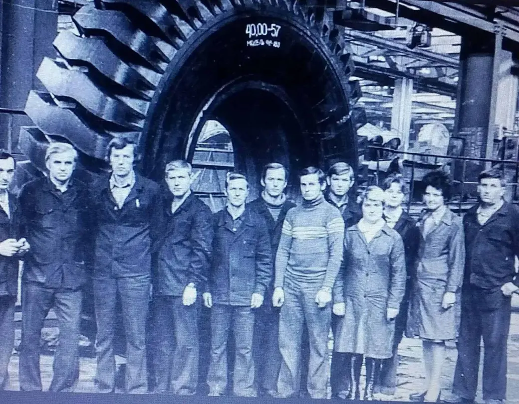 – Помогали нам Володя Прокопенко и Ибрагимов из Баку, не помню имя, начальник сборочного цеха Петр Ланцевич, начальник экспериментального участка Павел Кислица, энергетик Валерий Зинченко, электрик Сергей Ткачев, механик Василий Шупта, слесарь Ермолаев, вроде Володя. К утру мы, сборка, покрышку собрали, и уже варки, то есть вулканизации, не дождались, поехали отсыпаться. Поэтому на праздничном фото только вулканизаторщики и руководство.