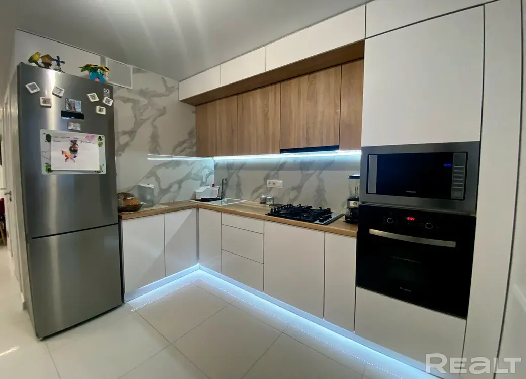 Описание: общая площадь – 77 кв. м., 3 этаж десятиэтажного дома, жилая площадь – 47,4 кв. м., кухня – 9,5 кв. м. Дом кирпичный, санузел раздельный, есть лоджия.