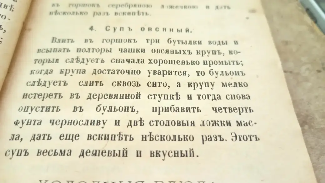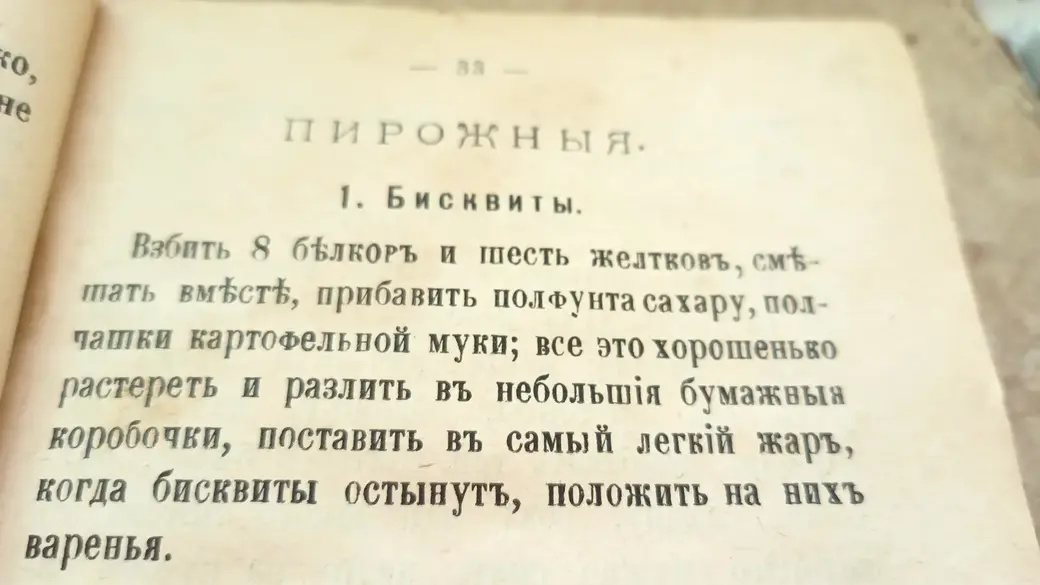Книги на религиозную тематику довольно специфичны, в них разобраться дано не каждому, тем более что использована еще дореформенная орфография. А вот кулинарную книгу мы полистали с большим удовольствием и интересом, там и со старой орфографией практически все можно понять! Есть, правда, некоторые вещи, непривычные для нас: например, масса ингредиентов измеряется в фунтах, бисквит выпекается «в самом легком жаре», а кисель варится на картофельной муке (видимо, это крахмал).