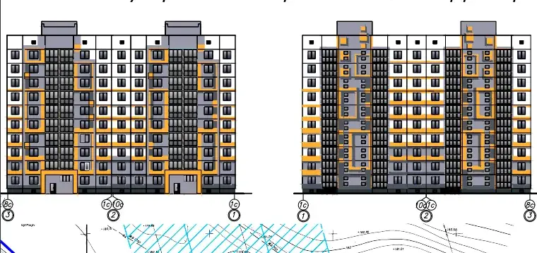 Три десятиэтажки – это два 2-х секционных и один 3-х секционный дома, общее количество квартир – 310, общий метраж – 18694, 39 кв. м. Проектом предусмотрено устройство парковок на 300 м/мест, в том числе 7 м/мест для инвалидов, что составляет 97% от количества квартир. Разработано устройство детских, спортивных площадок и площадок для отдыха.