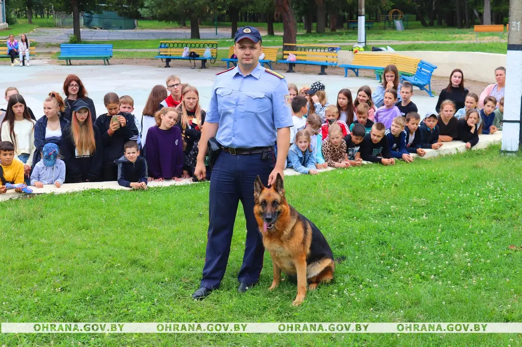 Они напомнили детям о правилах безопасных летних каникул, рассказали, что такое охранная сигнализация и для чего нужна тревожная кнопка. продемонстрировали выставку вооружения и технику. А милиционер-кинолог Александр Потапов и его служебная собака по кличке Багира к восторгу отдыхающих устроили показательные выступления по выполнению элементов общего курса дрессировки. Отпускать гостей долго не хотели…