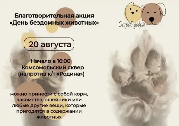 Как сообщает MyCity.by со ссылкой на учреждение по защите животных «Остров добра», организаторы обещают насыщенную концертно-развлекательную программу. Планируется выступление «Артист вокал студии» и учащихся лицея-колледжа искусств. В акции также примут участие команда кинологов и волонтеры БРСМ.