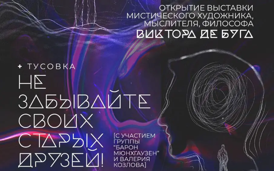 Он познакомит с творчеством могилевчанина Виктора де Буга «Воспоминания о будущем». А в день открытия экспозиции будет возможность еще и потусоваться в рамках проекта «Не забываете своих старых друзей» с участием группы «Барон Мюнхаузен» и Валерия Козлова.
