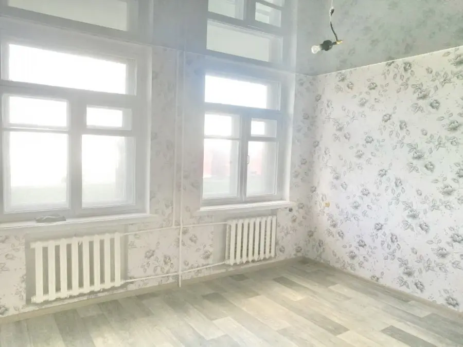 - Общая площадь – 37,6 кв.м, жилая площадь – 25,8 кв.м, кухня – 5,5 кв.м. Отопление паровое и печное, санузел совмещен, без балкона.