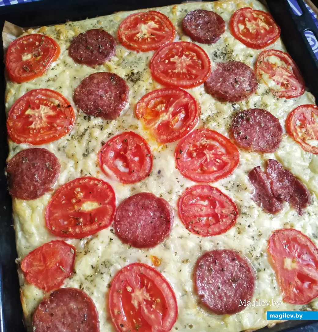 7. Духовку разогреть до 200 градусов и ставить выпекать пиццу минут на 20-30.