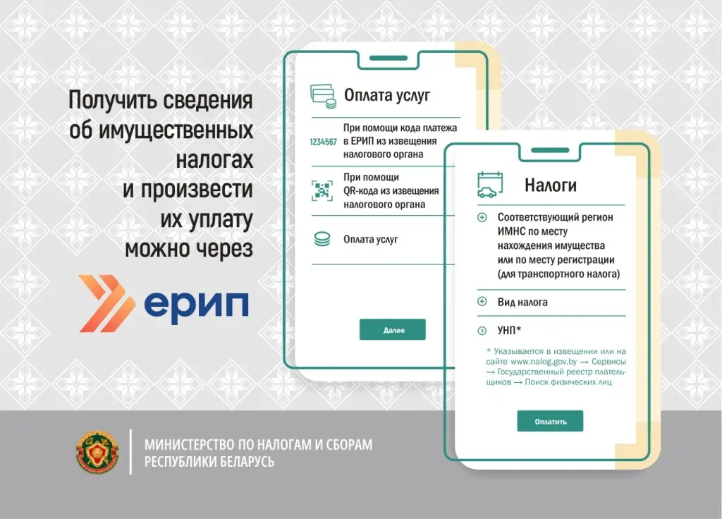 Уплата этих налогов производится на основании единого извещения (в нем отражены все объекты имущества, которыми владеет физическое лицо) любым удобным для плательщика способом, в том числе через ЕРИП.