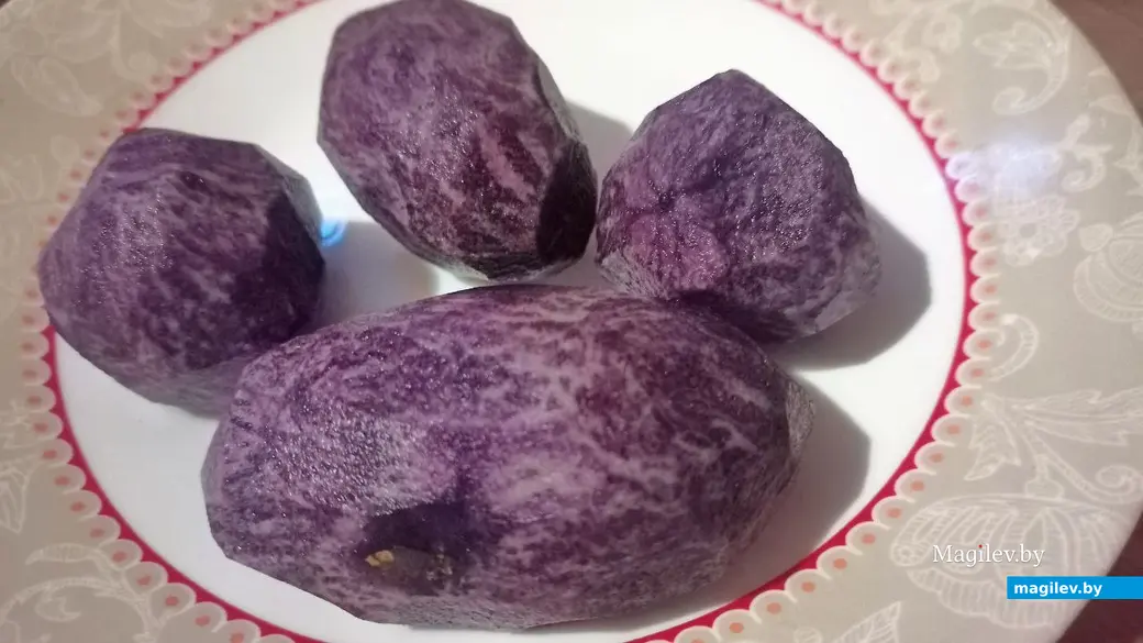 Юрий рассказывает, что на вкус этот «инопланетянин» практически не отличается от своих сородичей с белыми и светло-желтыми клубнями, имеет лишь слегка-уловимый специфический привкус. Но блюда с ним выглядят более оригинально.