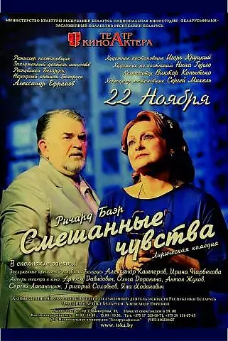 Спектакль «Смешанные чувства» поставлен народным артистом Беларуси, заслуженным деятелем искусств Республики Беларусь Александром Ефремовым по пьесе американского сценариста и драматурга Ричарда Баэра (перевод с английского языка и сценическая редакция Сергея Таска). В основе сюжета – история про одинокого преклонных лет мужчину-вдовца, который делает попытку «начать все сначала» с женщиной, которая тоже похоронила мужа. На первый взгляд кажется, что все очень просто: почему бы двум одиноким людям не соединить свои судьбы, и не прожить оставшиеся годы в любви и счастье? Но, поразмыслив, каждый понимает, что не так-то просто отказаться от устоявшегося образа жизни и начать все сначала.