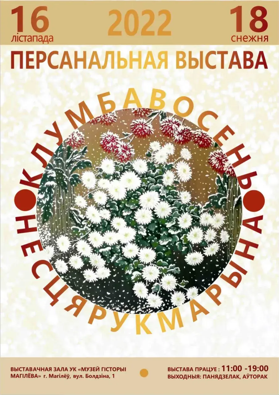В Выставочном зале Могилева с 16 ноября начинает работу проект Марины Нестерук «Клумбавосень», в составе которого 58 живописных полотен, наполненных энергией, восхищением мира и радостью жизни.
