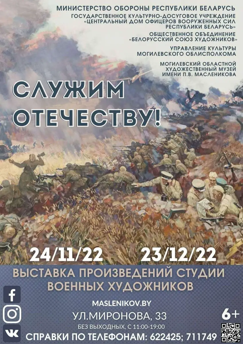 Выставочный проект «Служим Отечеству» посвящается солдатам, которые защищали от врага свои земли, родных, страну. Это разножанровые живописные полотна: сюжетно-тематические картины и портреты, которые посвящены ратному труду и духовному миру воина наших дней.