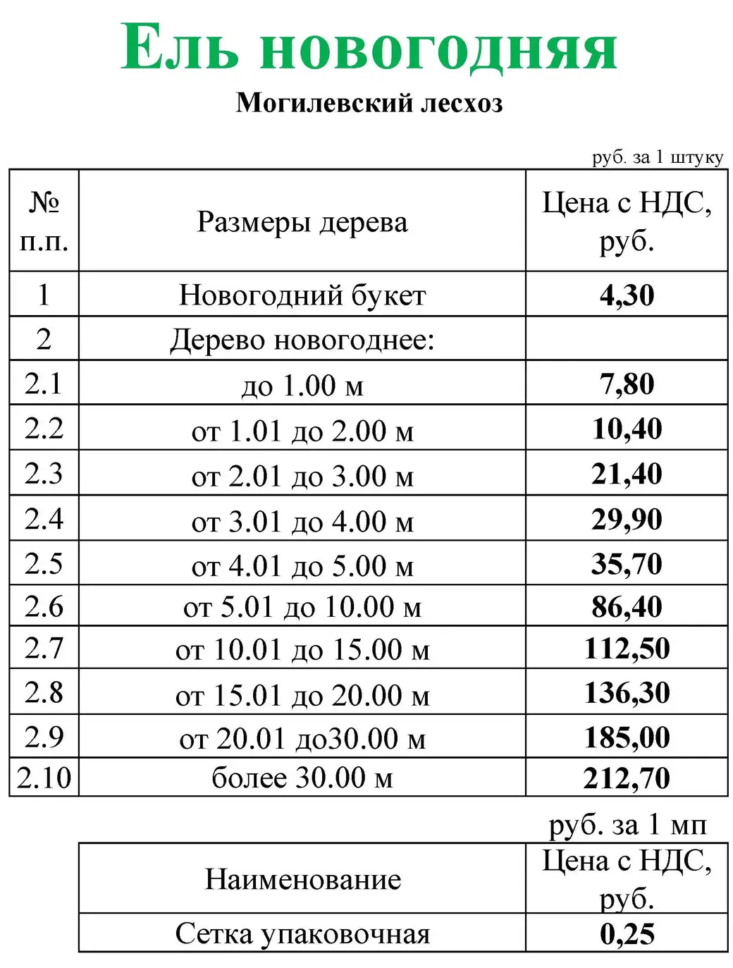 С 20 декабря по 31 декабря с 12.00 до 20.00 в Могилевском лесхозе организована реализация деревьев новогодних в следующих пунктах продаж:
