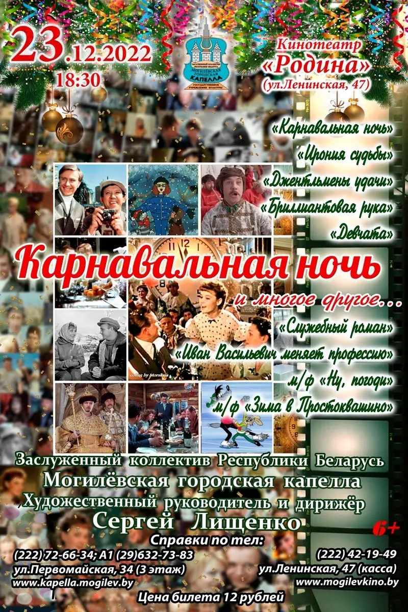 Представит свою кинопрограмму капелла 23 декабря в кинотеатре «Родина». Начало концерта в 18:30. Цена билета – 12 рублей.