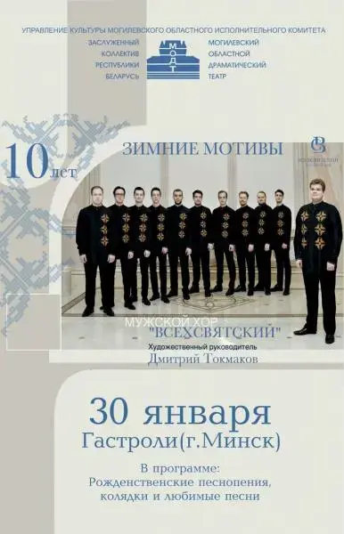 30 января в Могилев приезжает минский мужской хор «Всехсвятский» под руководством Дениса Токмакова с концертом «Зимние мотивы».