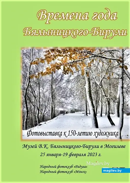 Многие фотографы нашей страны в разные годы выезжали на пленэры в те места, где писал свои произведения легендарный художник. Там они, естественно, много снимали. Вот именно фотографические пейзажи членов фотоклубов «Радуга» (Могилев) и «Минск» представлены на выставке «Времена года Бялыницкого-Бирули», которая приурочена к 150-летию живописца.Открытие фотовыставки «Времена года Бялыницкого-Бирули». Могилев, музей Бялыницкого-Бирули, 25.01.2023 года.