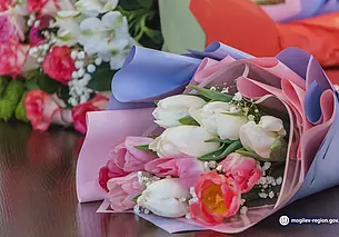 «К празднику мы подготовили 5,5 тыс. тюльпанов и 5,3 тыс. роз. Эти цветы всегда пользуются большим спросом, - отметила главный агроном предприятия Кристина Автушкова. - Также во время праздничных дней в продаже будет представлен широкий ассортимент других цветов - эустом, маттиол, ранункул, альстромерий и др. Всего их будет представлено около 1 тыс.». Кроме этого, в фирменной сети предприятия в широком ассортименте представлены комнатные растения, которые в преддверии праздника они тоже пользуются спросом у могилевчан.