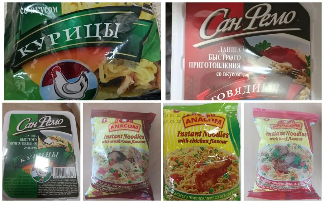 Использование пищевой добавки – красителя Е160а также обнаружено в лапше быстрого приготовления с грибами, со вкусом говядины и курицы с маркировкой «Anacom» того же производителя.