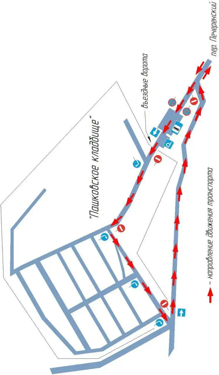И предлагает вниманию водителей схемы движения на Лавсановском и Пашковском кладбищах:
