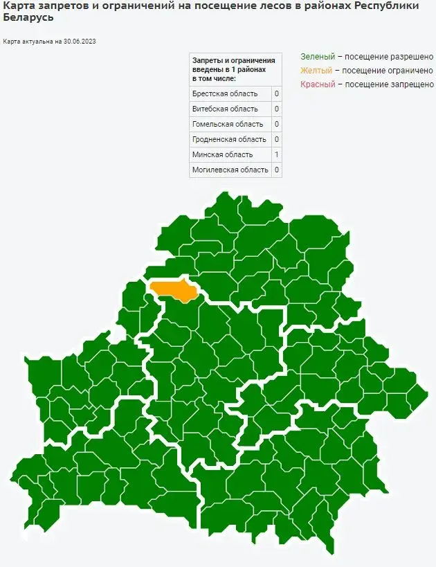 Как сообщают в Министерстве лесного хозяйства с сегодняшнего дня (30 июня) ограничения на посещения лесов продолжают действовать только в Мядельском районе Минской области. На всей остальной территории страны леса можно посещать беспрепятственно, в том числе и на Могилевщине.