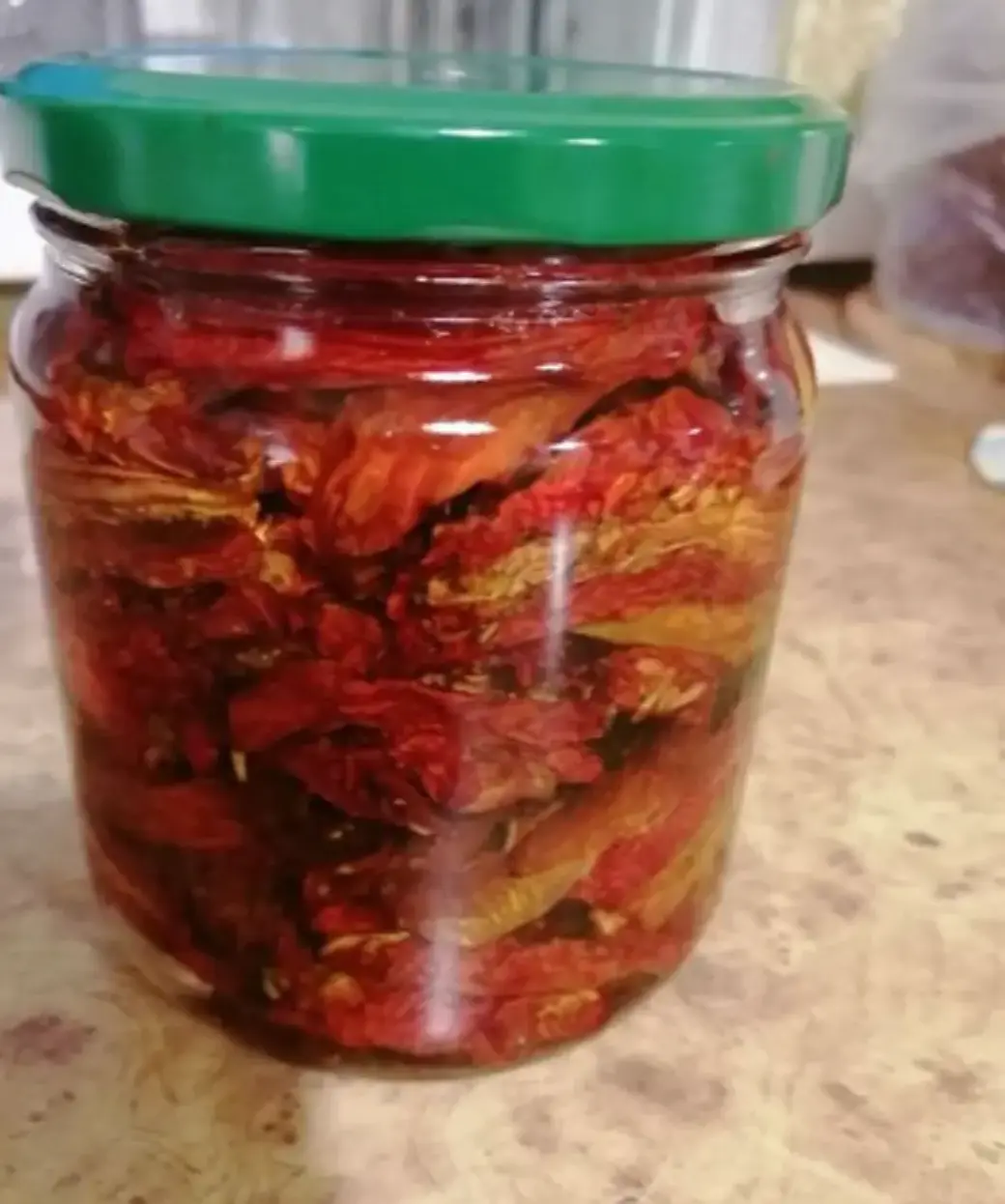 Вяленые помидоры (томаты), расфасованы в стеклянные баночки 0,5 л. Контакты здесь.