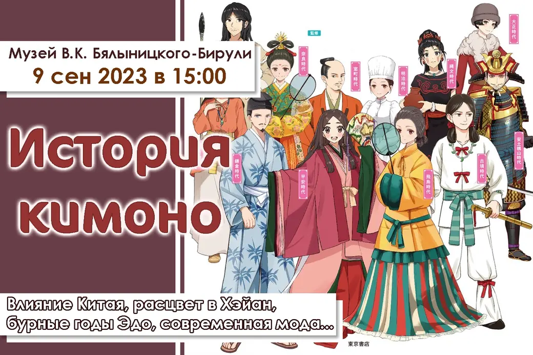Встреча 9 сентября в музее станет продолжением цикла лекций, посвященных особенностям Японии, культуре и традициям этой страны. Предстоящая будет посвящена кимоно: его истории возникновения, в том числе будут ответы на вопросы: почему костюм эпохи Хэйан так отличается от современного, как японки согреваются и спасаются в жару в кимоно? Лектор расскажет о популярных техниках росписи кимоно, покажет примеры и детали разного времени, покажет процесс одевания мужчин, женщин и майко.