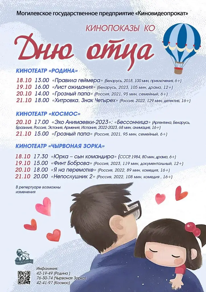 Важно: в репертуаре возможны изменения. Справка по телефонам: 80222-42-19-49, 76-30-74, 42-41-97.