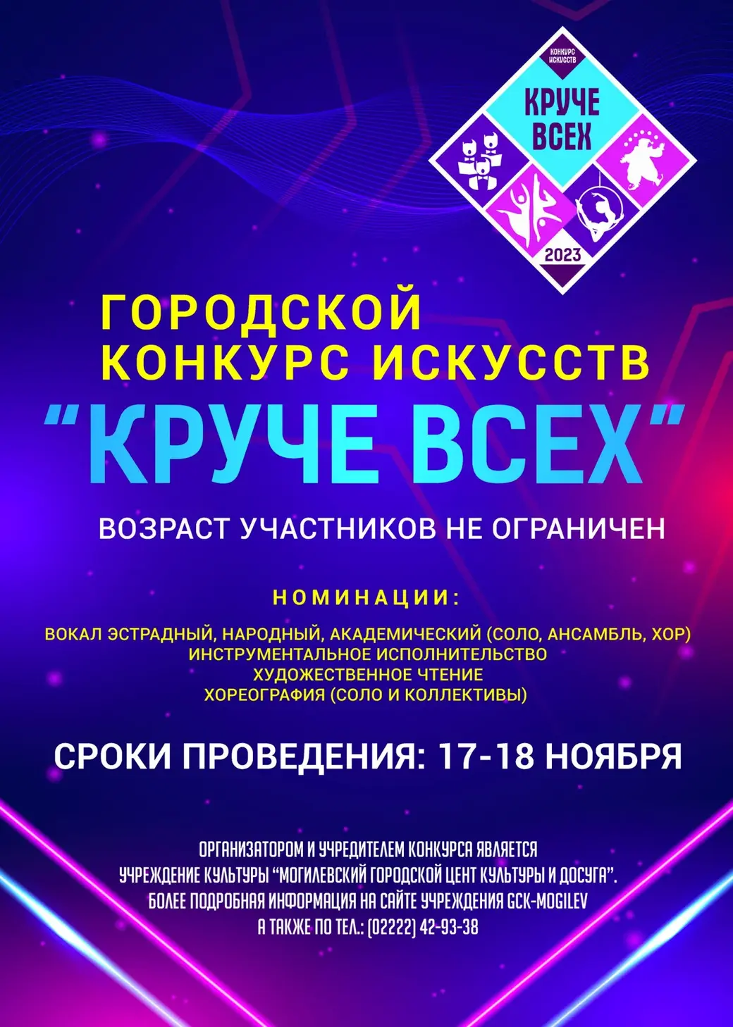 Конкурс «Круче всех» состоится 17-18 ноября 2023 года. Прием заявок с 17 октября. Справки по телефону: 80222-42-93-38.