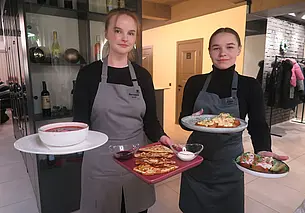 Впрочем, две миловидные официантки с легкостью справлялись с таким наплывом посетителей. Нам же и вовсе подали меню еще до того, как мы успели снять верхнюю одежду.