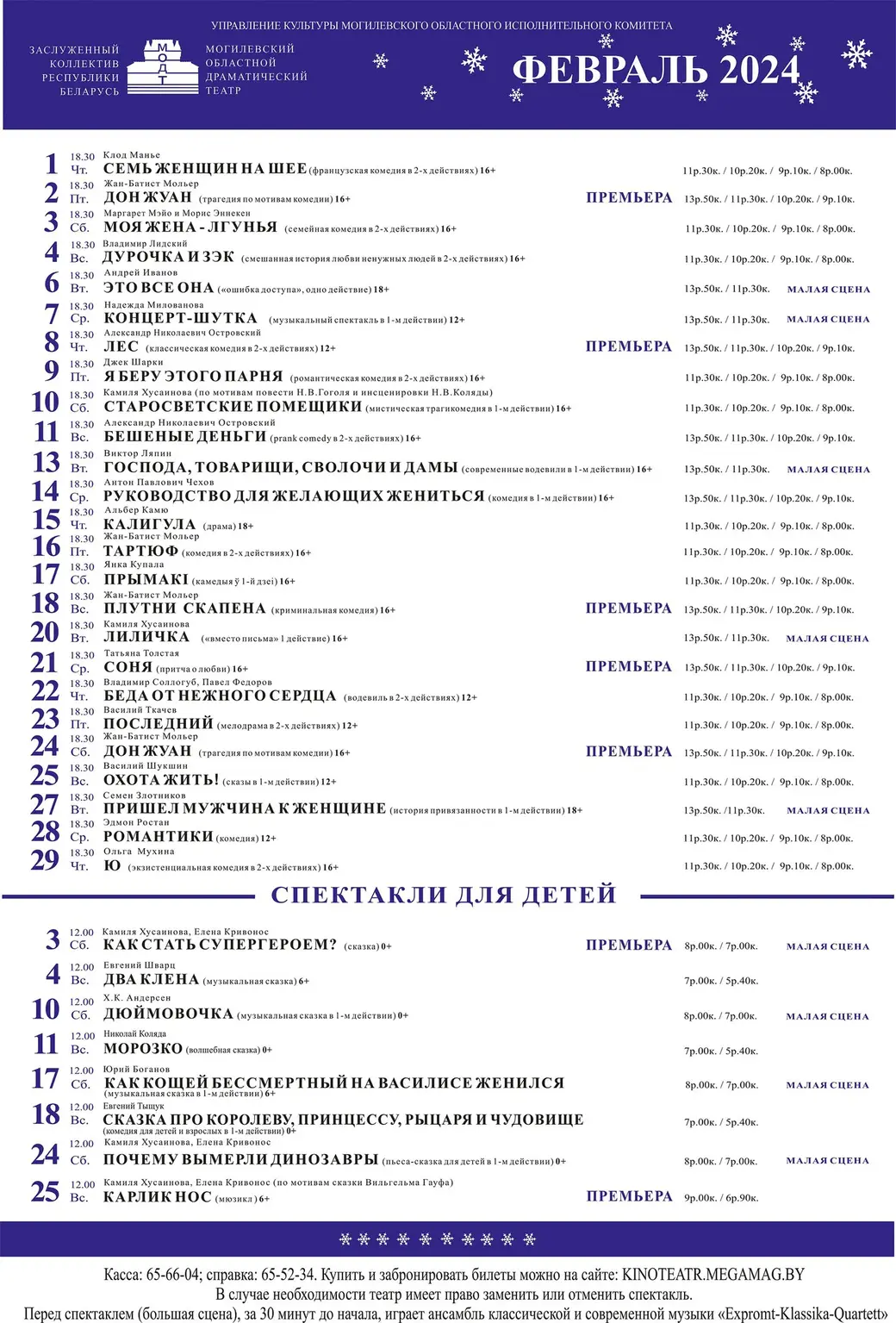 Телефон кассы драмтеатра: 80222-65-66-04, справка по телефону:80222-65-52-34.