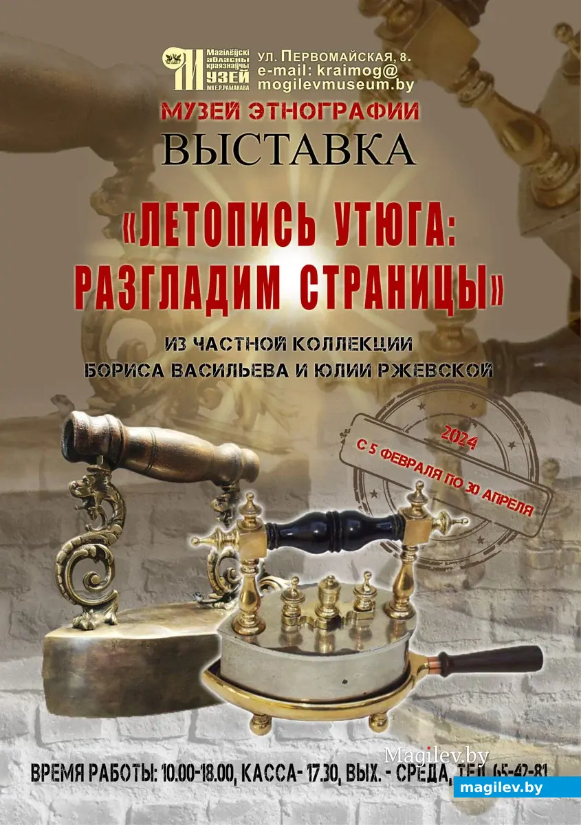 «Летопись утюга: разгладим страницы» – так называется выставка, которая проходит в музее этнографии Могилева. Это частная коллекция Бориса Васильева и Юлии Ржевской. В Могилев они привезли более 250 утюгов и приспособлений для глажения – каменные, стеклянные, деревянные утюги, деревянные гладильные машины, жаровни, утюги на углях, литые утюги, утюги со вставкой и многие-многие другие. У большинства из них есть личные истории.