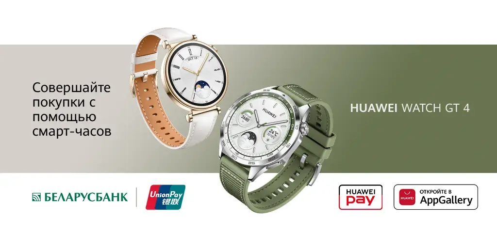 Ранее сервис Huawei Pay в Беларуси работал только на смартфонах. Теперь же технологией бесконтактной оплаты могут воспользоваться и владельцы смарт-часов Huawei Watch GT 4. Для этого на наручном гаджете нужно привязать банковскую карту UnionPay к приложению «Кошелёк HUAWEI». Далее с его помощью можно оплачивать товары и услуги за доли секунды, просто приложив запястье к платежному терминалу.