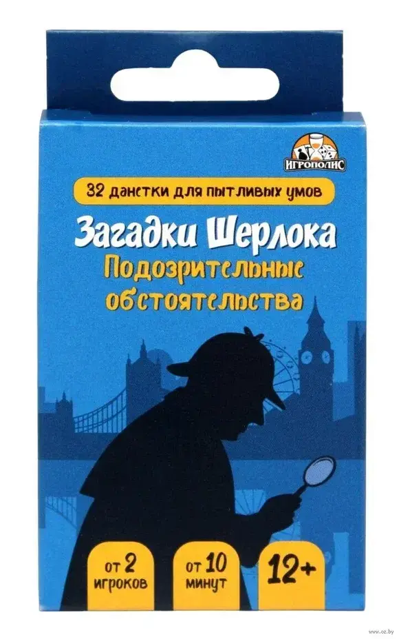 В список вошли и «Загадки Шерлока. Подозрительные обстоятельства». Игра адресована тем, кто увлекается расследованиями и имеет возрастной рейтинг от 12 лет. В нее играют как вдвоем, так и семьями и компаниями из шести и более человек.