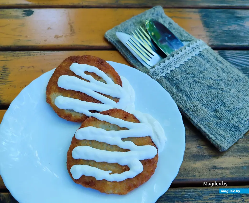 - Драники (порция из двух штук) со сметаной – 6.50,