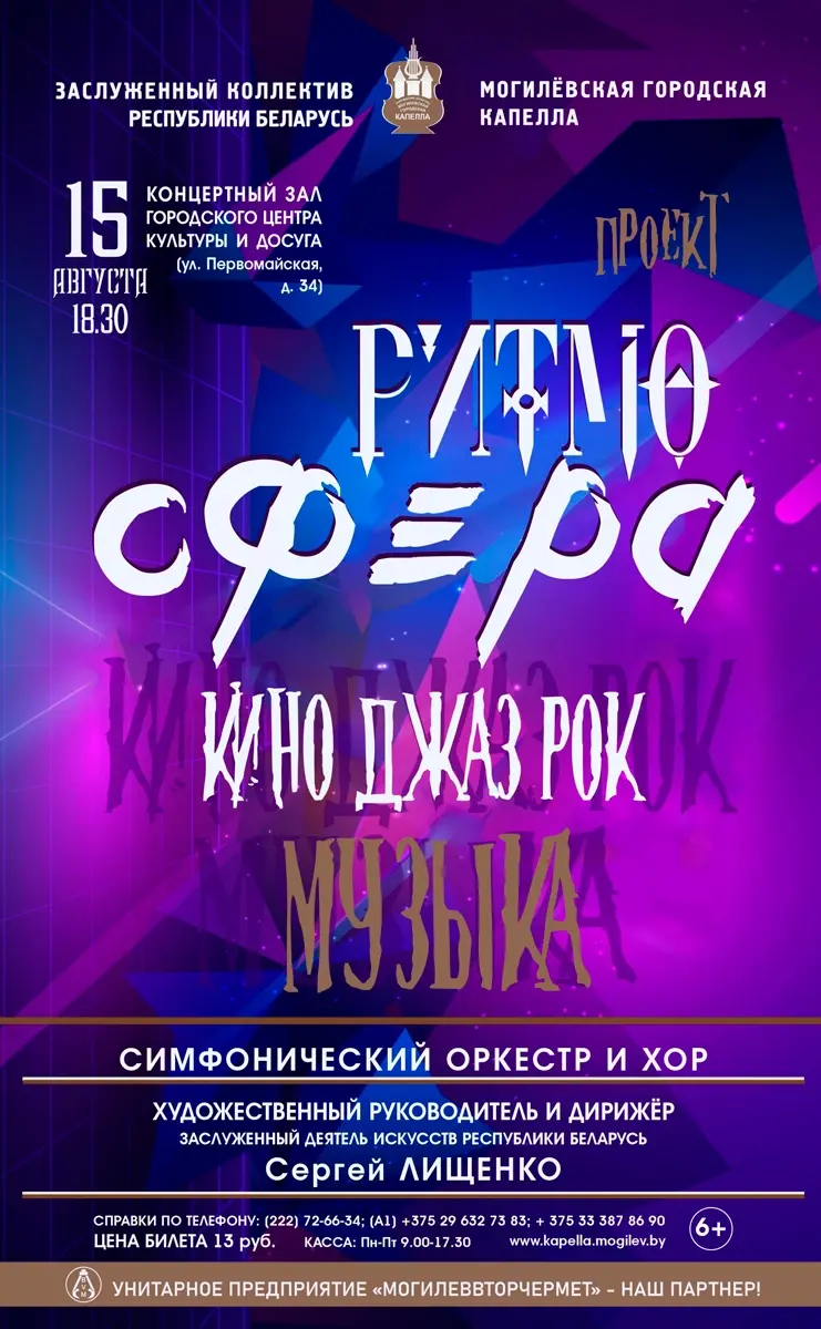 Новый концертный сезон Могилевская городская капелла под руководством Сергея Лищенко начинает в августе. 15 августа – первый концерт коллектива, который называется «Ритмо-сфера».
