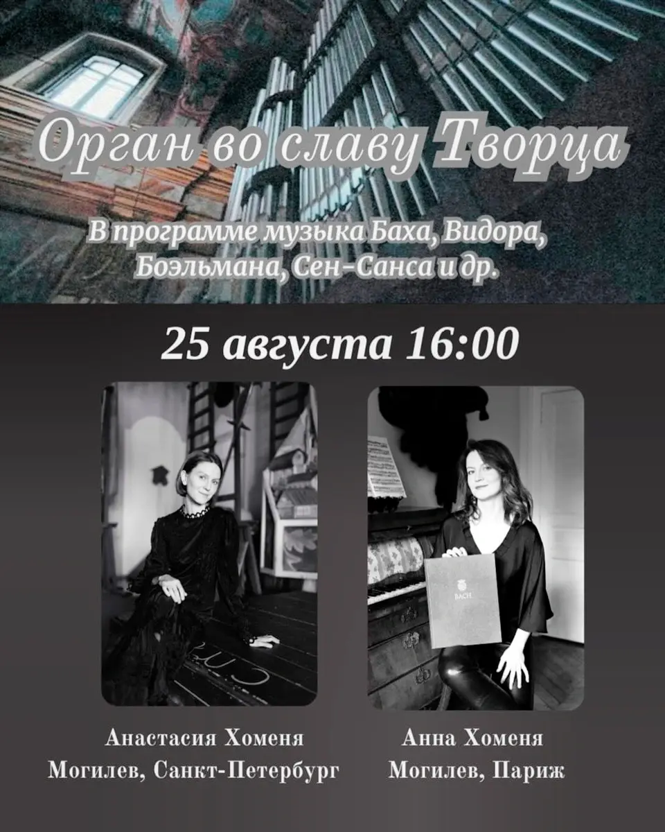 «Орган во славу Творца» – так называется концерт органной музыки, который исполнят могилевчанки Анастасия и Анна Хоменя. В настоящее время музыканты живут не в Могилеве, но практику выступления в городе не прекращают.