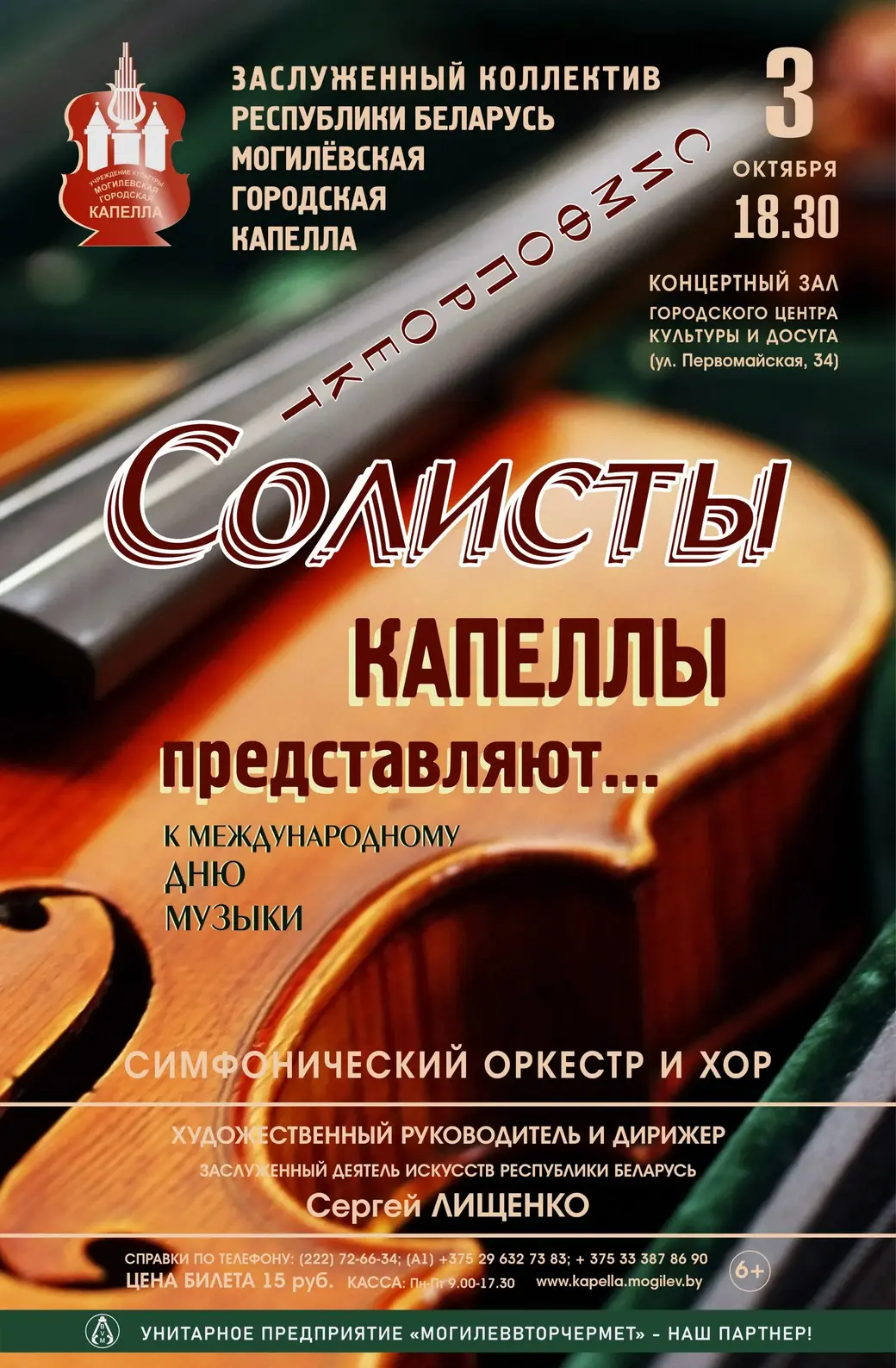 Концерт состоится 3 октября в зале Могилевского городского Центра культуры и досуга (улица Первомайская, 34). Начало в 18.30. Цена билета – 15 рублей. Справка по телефону: 80222-72-66-34.