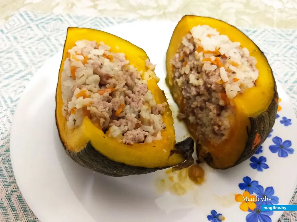 10. Кстати, таким же образом можно сделать «сладкий» вариант фаршированных тыкв – его особенно любят дети. В качестве начинки здесь рис, смешанный с изюмом и курагой. По желанию можно добавить сахар или мед, ванилин. Не забудьте, что при таком варианте начинки в каждую тыковку нужно положить кусочек сливочного масла.