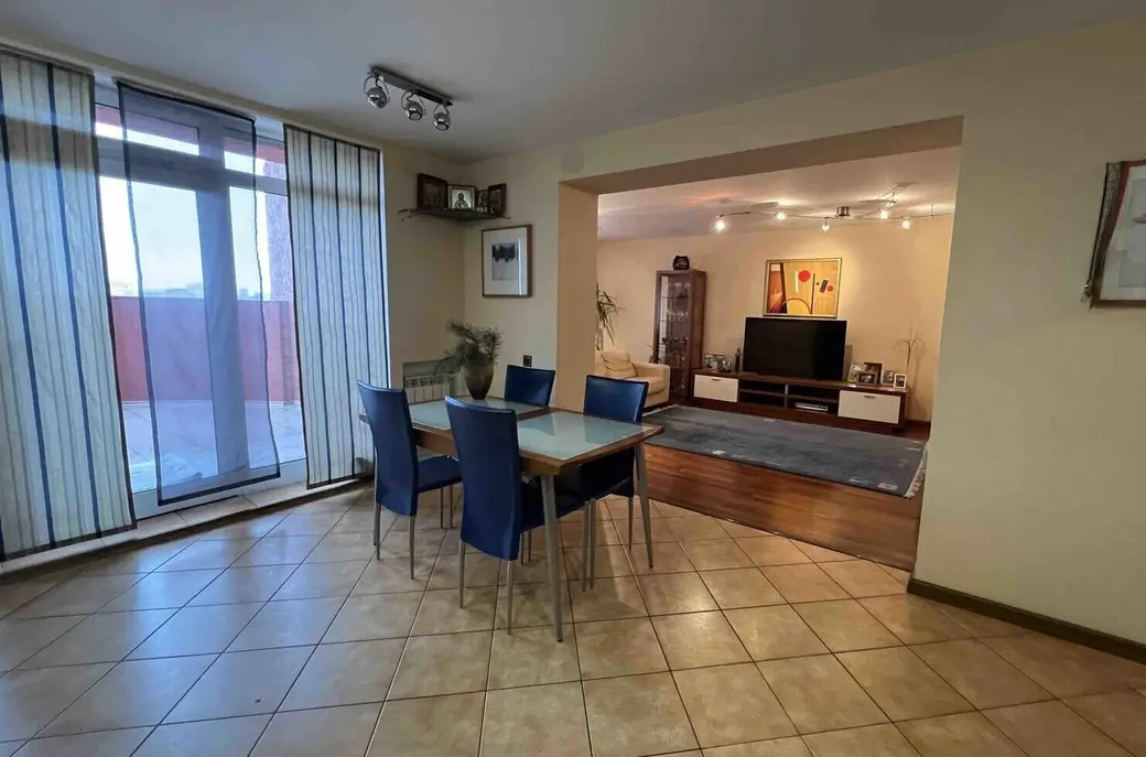 - Описание: 9-й этаж 10-этажного дома, общая площадь – 182,3 кв. м, жилая – 90,8 кв. м, кухня – 17,3 кв.м., 2 санузла, дом кирпичный 1998 года постройки, лоджия.