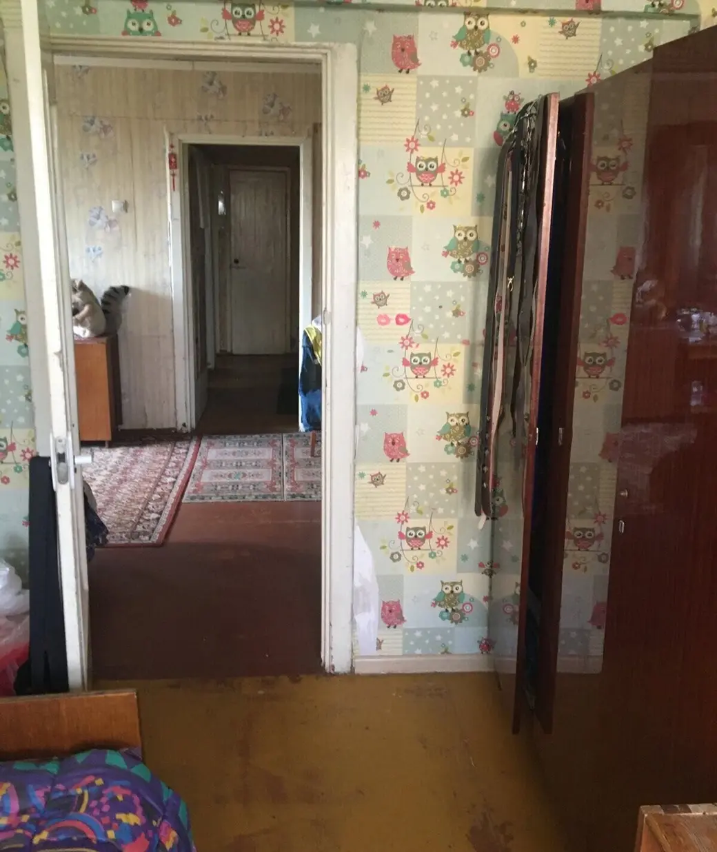 - Описание: 5-й этаж 5-этажного дома, общая площадь – 59,5 кв. м, жилая – 43,8 кв. м, кухня – 5,9 кв. м., санузел раздельный, дом панельный 1974 года постройки.