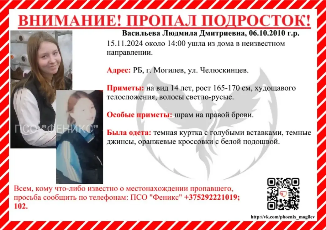 Приметы: на вид 14 лет, рост 165-170 см, худощавого телосложения, волосы светло-русые.