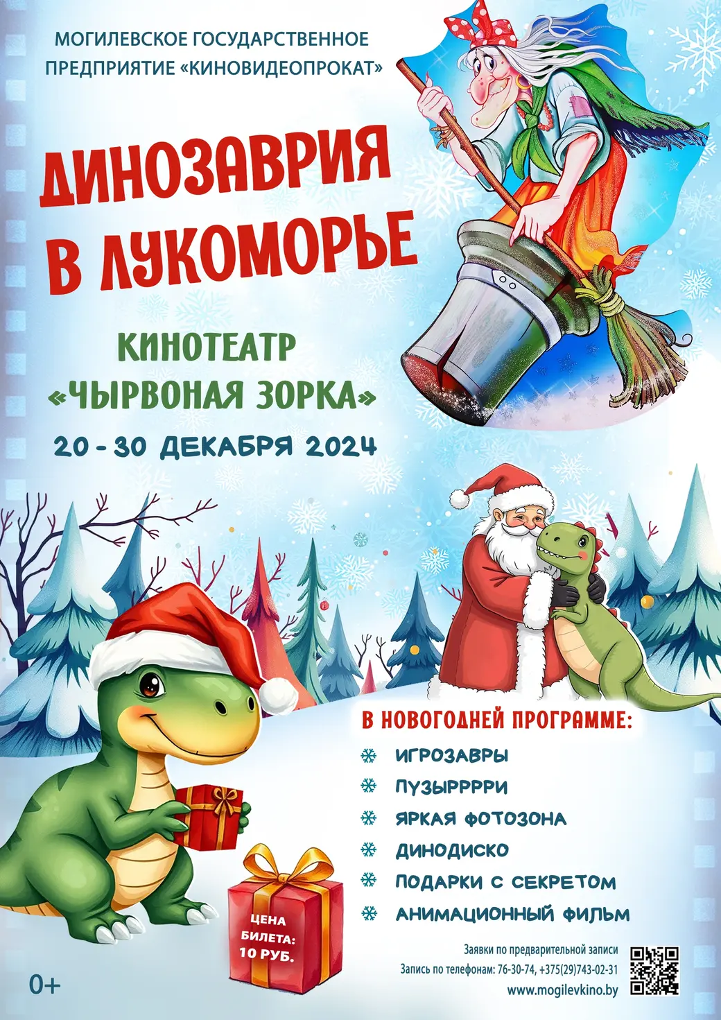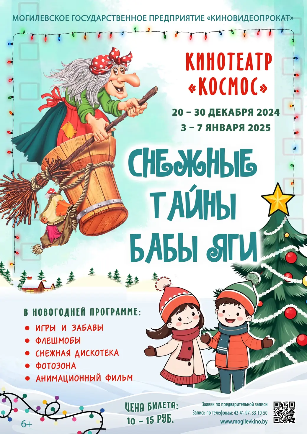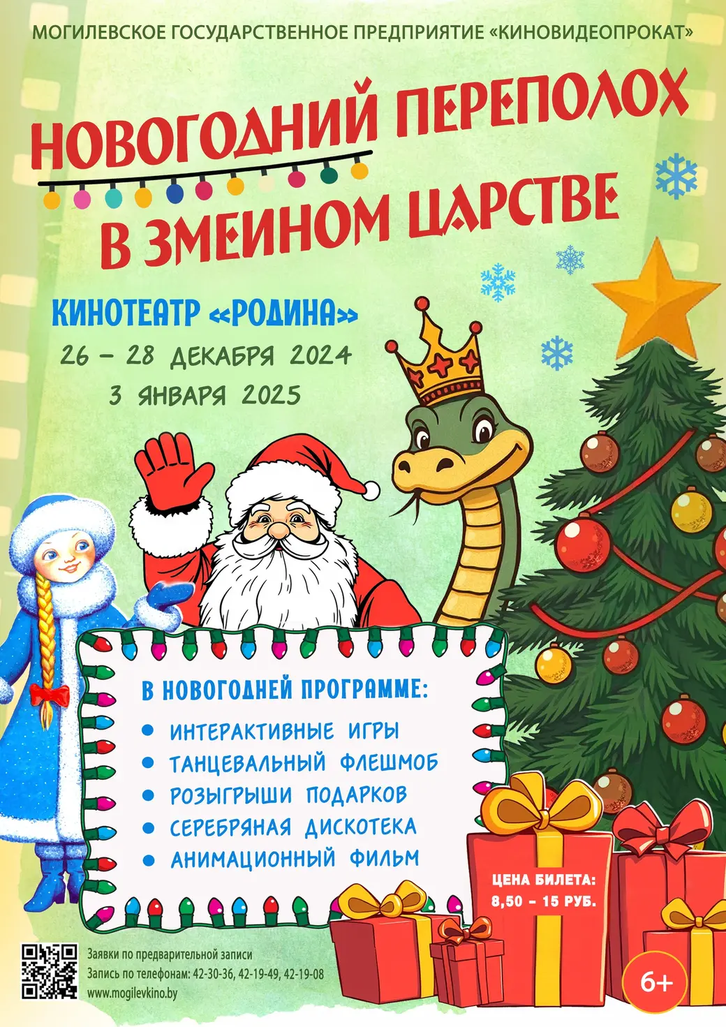 С 20 декабря кинотеатры «Родина», «Чырвоная Зорка» и «Космос» представят свои новогодние утренники для могилевчан и гостей города. В программе: интерактивные игры, забавы, пузыри, танцевальный флешмоб, розыгрыш подарков, яркие фотозоны, дискотеки, анимационный фильм.