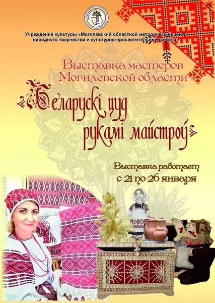 Выставка работ мастеров будет работать с 21 по 26 января 2025 года в Могилевском областном методическом центре народного творчества и культурно-просветительной работы.