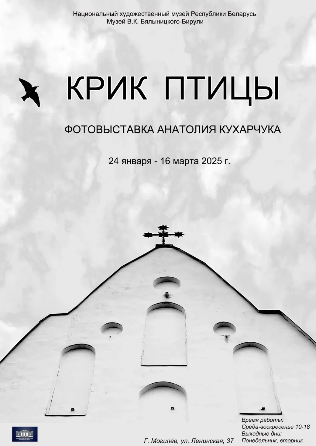 Проект «Крик птицы» будет представлен в Могилевском художественном музее имени Витольда Бялыницкого-Бирули. Торжественная церемония открытия выставки состоится 24 января в 17.00. Выставка будет работать до 16 марта.