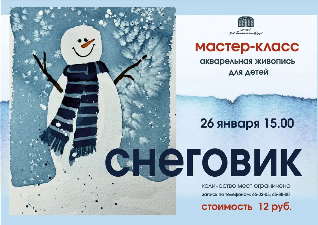 «Снеговик» – так называется мастер-класс для детей. У его участников будет возможность попрактиковаться в акварельной живописи под руководством опытного художника.